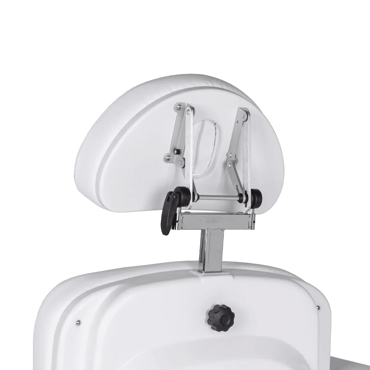 Мягкие элементы изготовлены из плотного поролона, который обладает эффектом памяти, что гарантирует максимальный комфорт и расслабление Вашим клиентам во время процедур. Обшивка сделана из экологически чистого и качественного материала – экокожи. Купить косметологическое кресло МД-848-3, 3 мотора можно под любой дизайн интерьера. Подголовник с отверстием для лица регулируется по высоте и в горизонтальной плоскости.