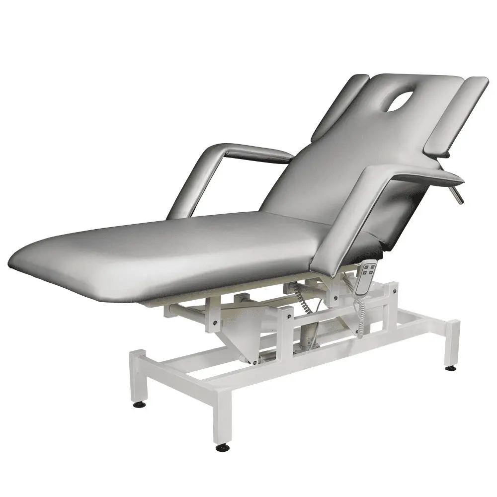 Комплектация: кушетка, подлокотники, съемная подушка, металлические элементы каркаса и основания, электропривод с двумя электромоторами и дистанционным пультом управления.