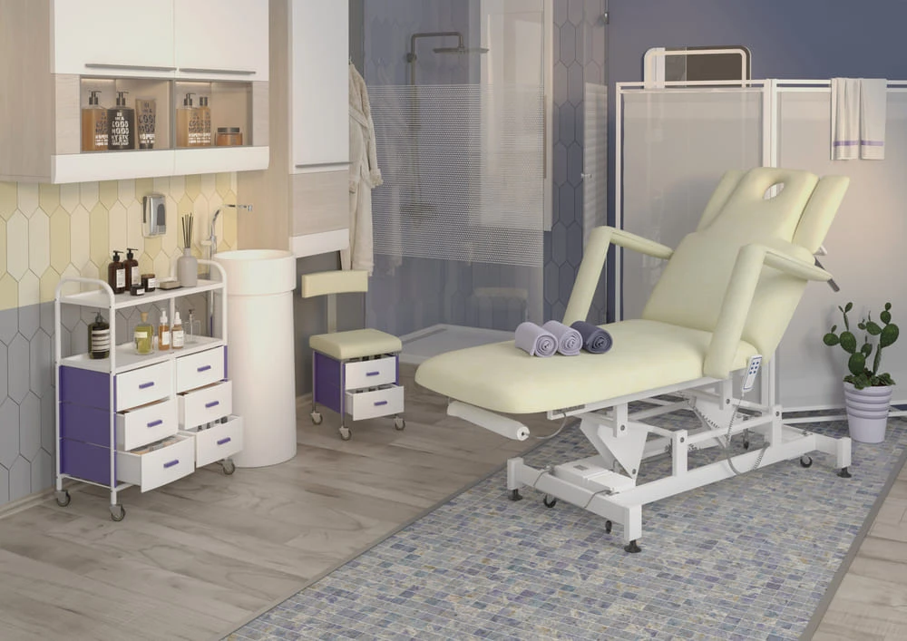 Для инструментов, аксессуаров и расходных материалов достаточно места в шести выдвижных ящиках. Полки можно использовать как для необходимых приспособлений, так и для установки небольших аппаратов. Несомненным плюсом косметологического оборудования являются встроенные маневренные колесики. Мастер без особых усилий может перемещать косметологическую тележку по рабочей зоне.