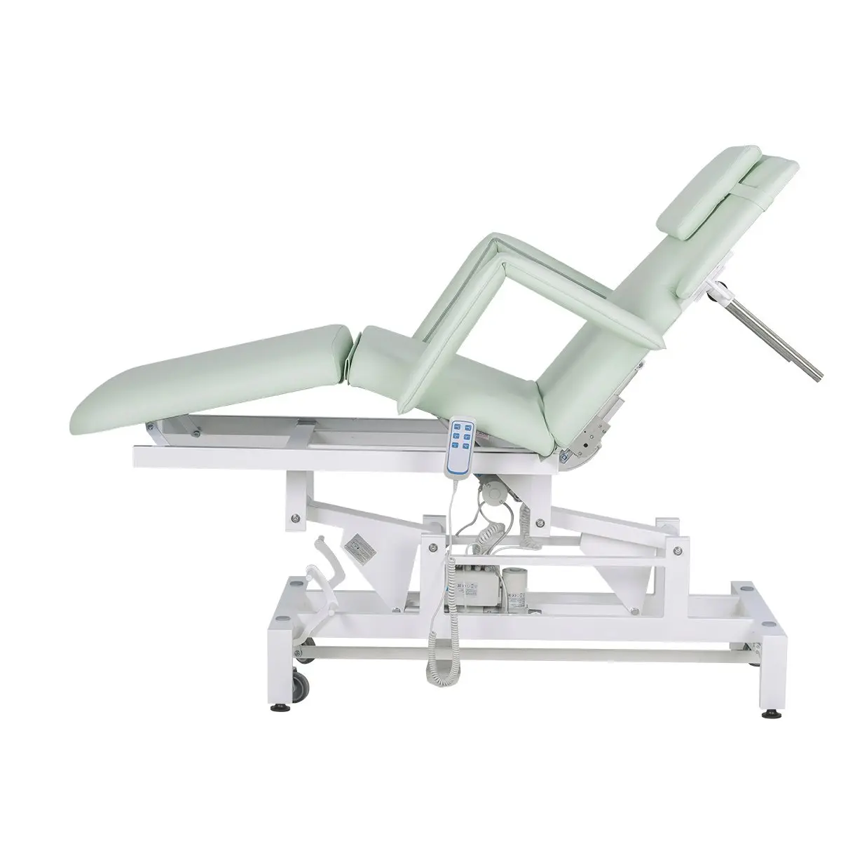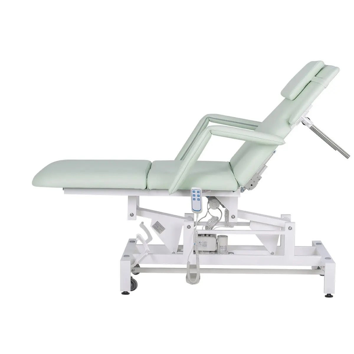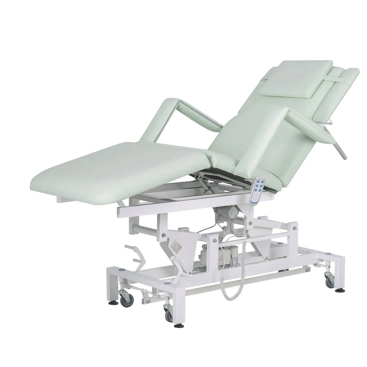 В данной модели установлено 3 мотора для подъема кушетки, регулировки спинки и наклона сиденья. Благодаря такой конструкции купить кушетку массажную МД-849 (Элегия-3А) на колесной базе можно для оказания как массажных, так и косметологических услуг. При помощи компактного и удобного пульта мастер сможет легко настраивать кушетку для конкретной процедуры. Для обшивки мягких деталей применяется современный обивочный материал – качественная экокожа. Кушетка массажная МД-849 (Элегия-3А) на колесной базе в магазине МЭДИСОН представлена в любом цвете под заказ.