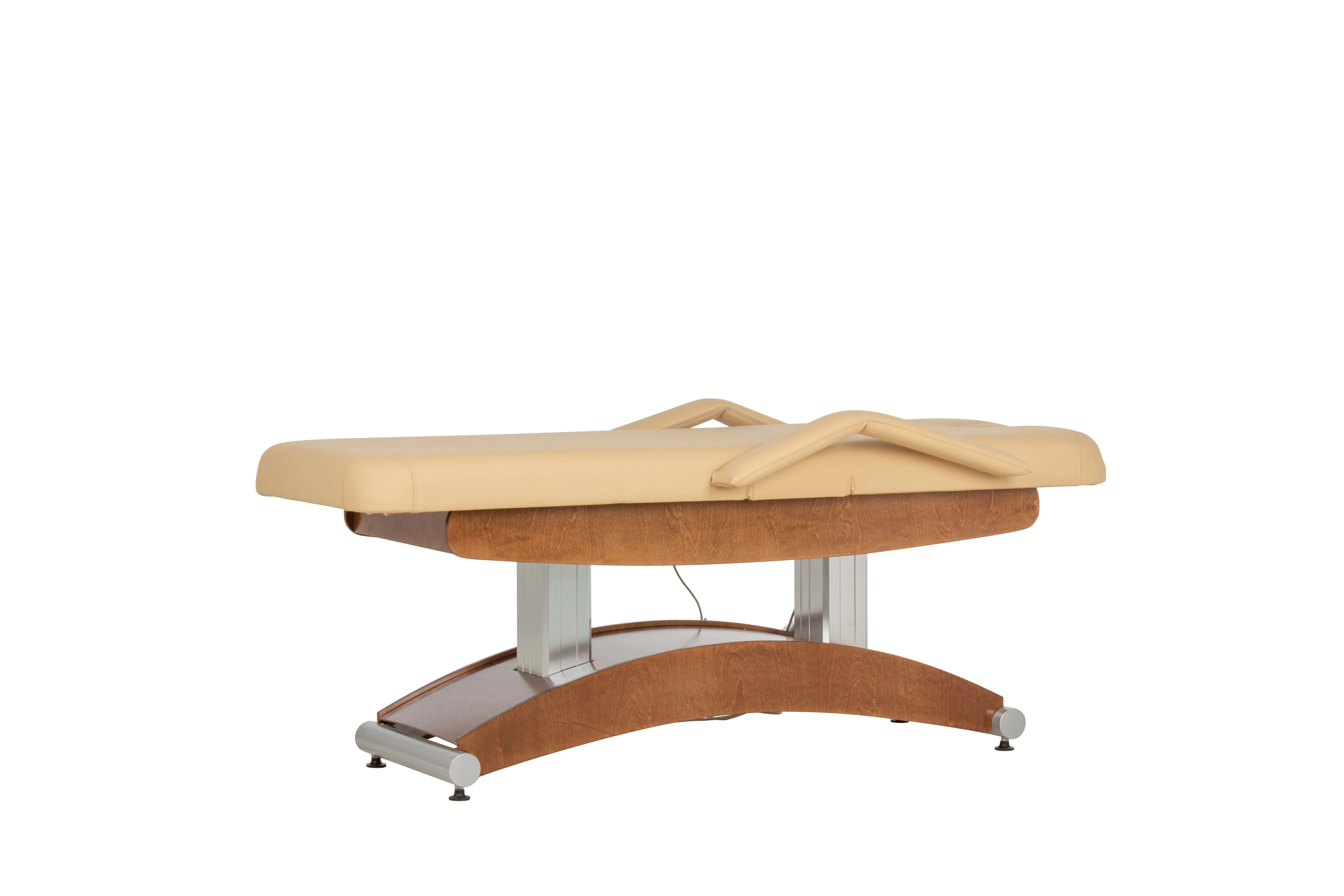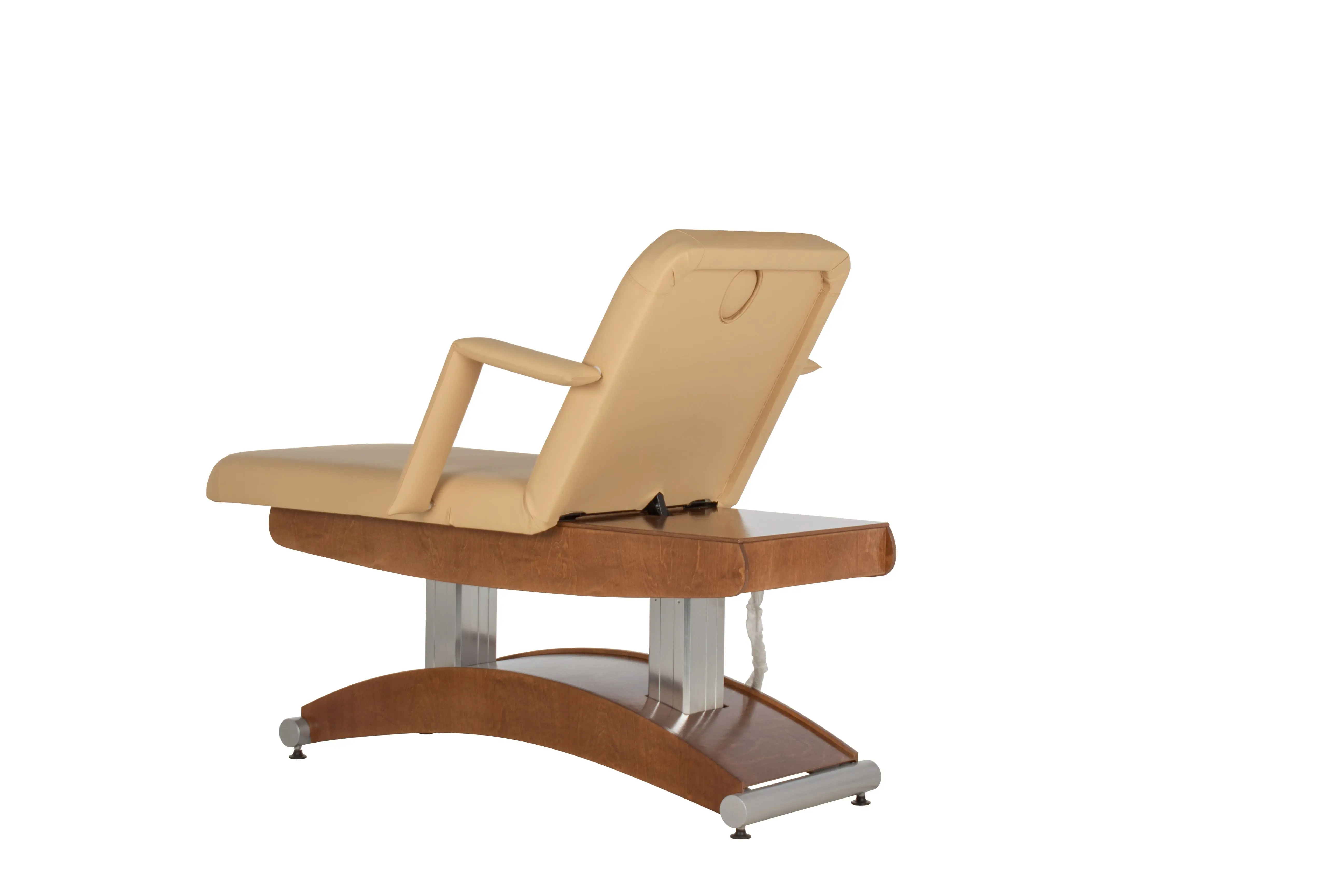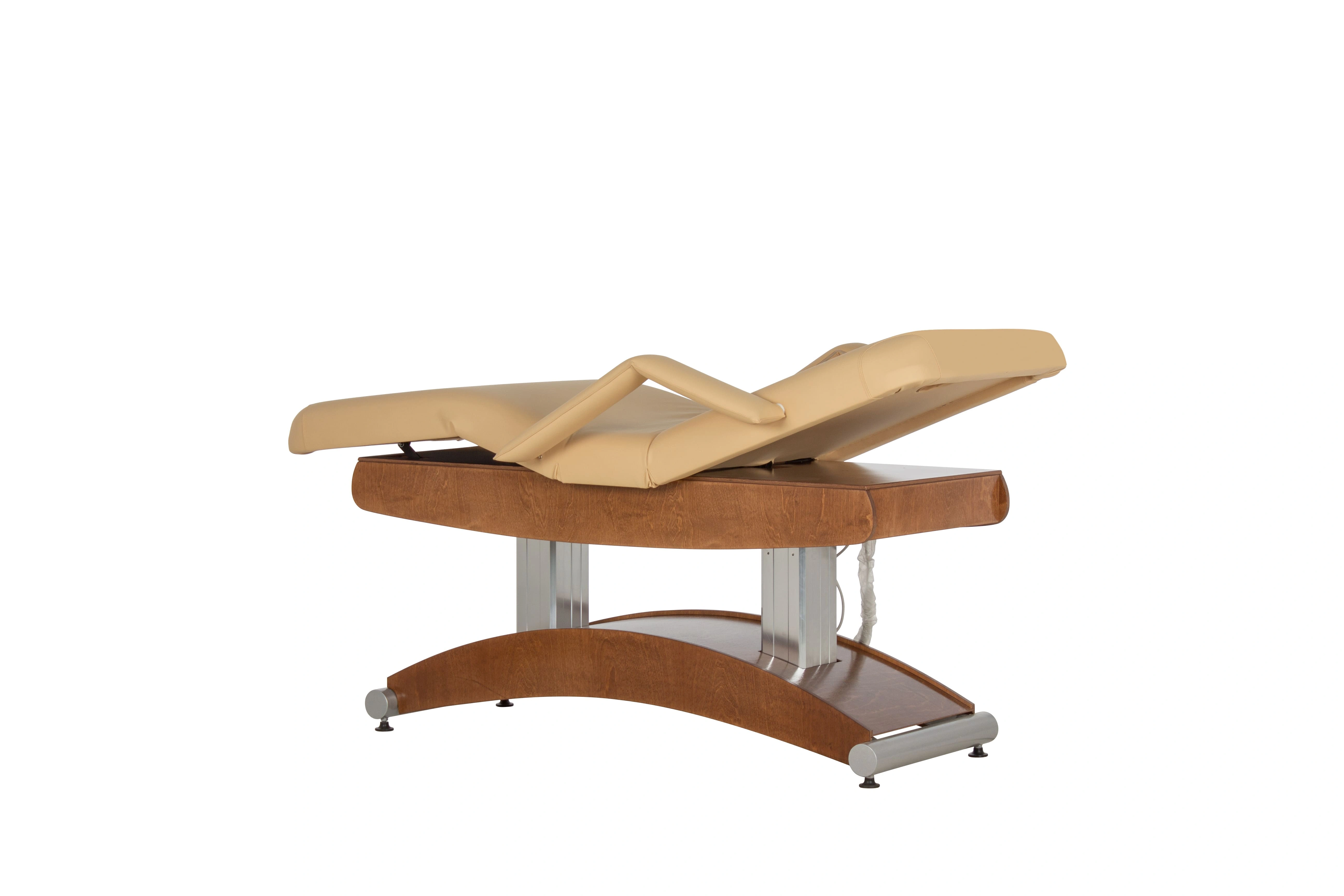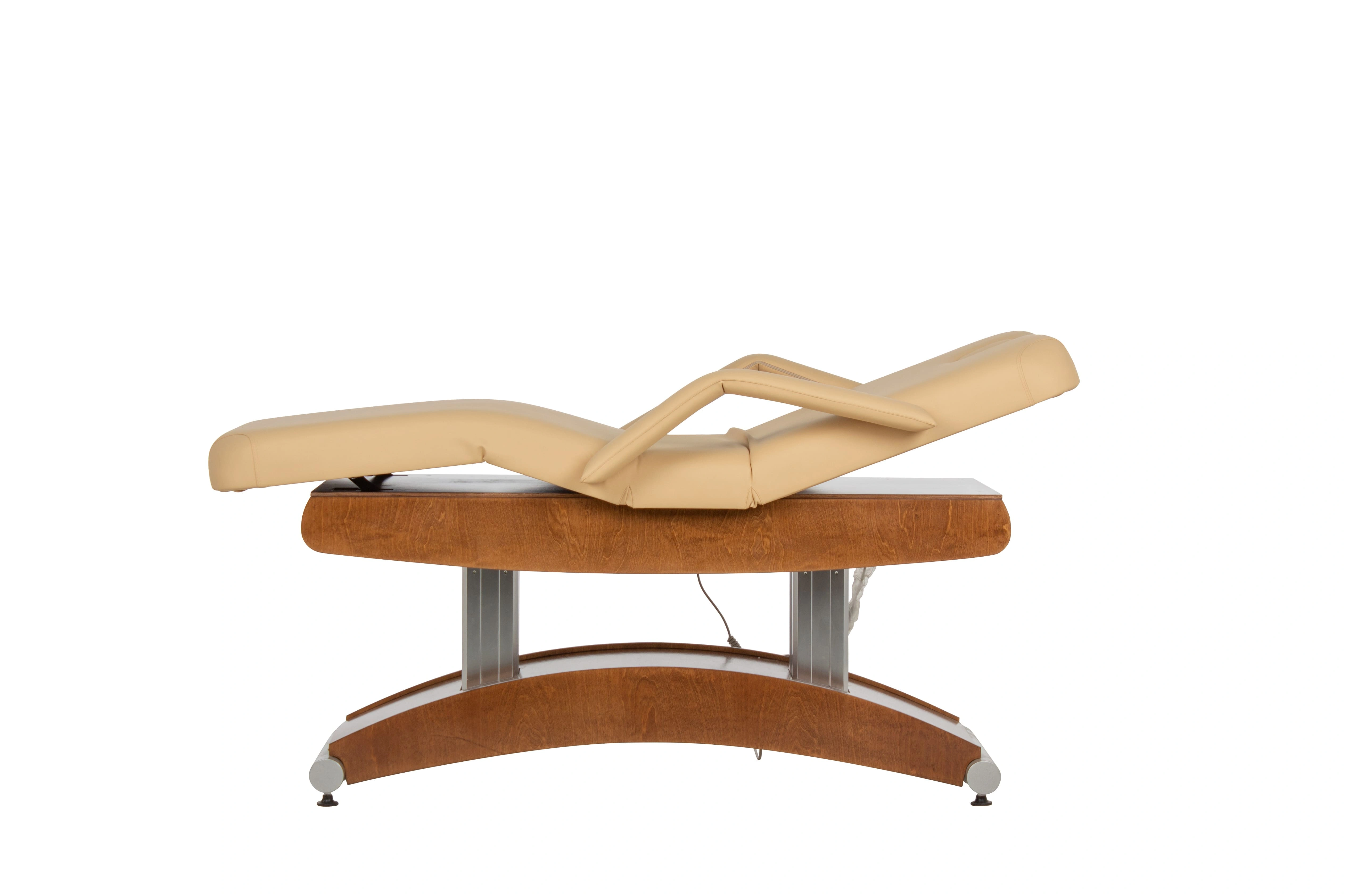 Особенностью СПА-кушетки "Аврора-2" является наличие четырех электроприводов. Они отвечают за регулировку подъема кресла, спинки и за регулировку угла наклона сиденья. Благодаря этому, врач или массажист может легко менять положение кушетки без усилий и лишних движений, уважая комфорт клиента и сохраняя свою работоспособность.