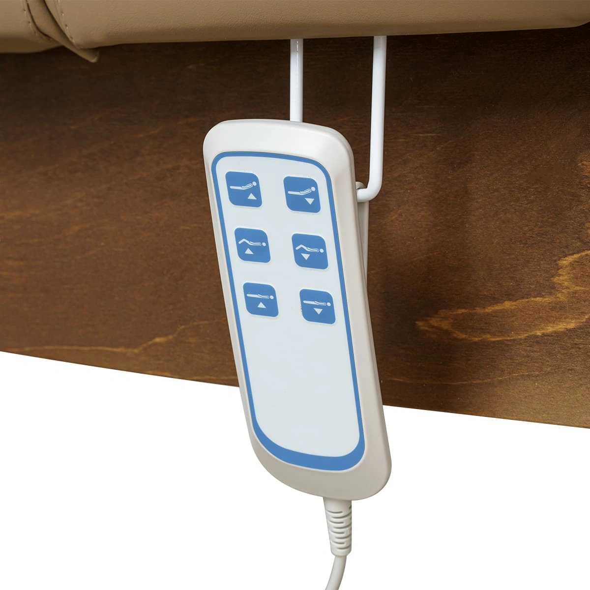 Комплектация: кушетка, подлокотники, съемная подушка, элементы каркаса и основания, электропривод с тремя электромоторами и дистанционным пультом управления.