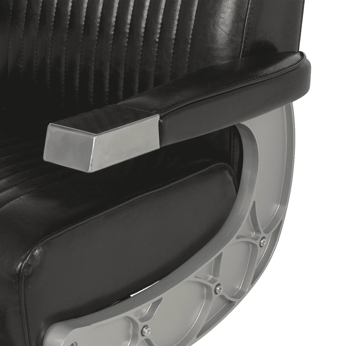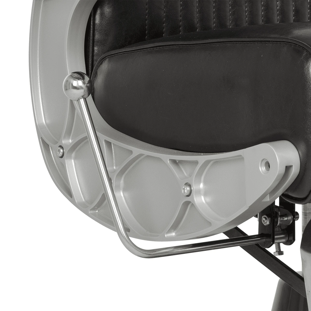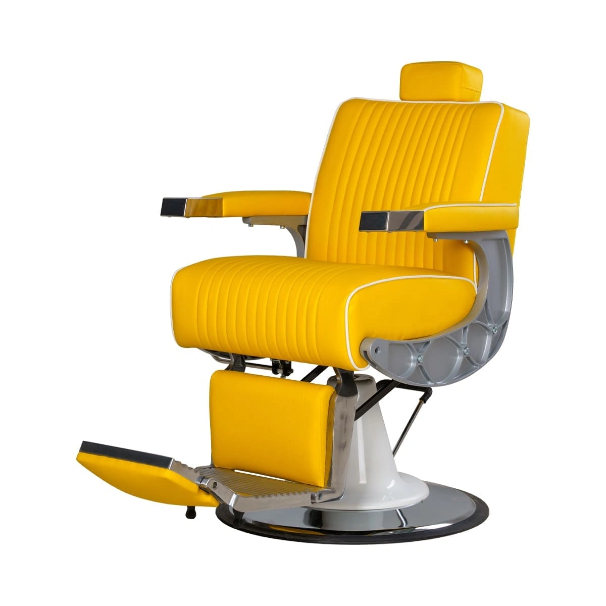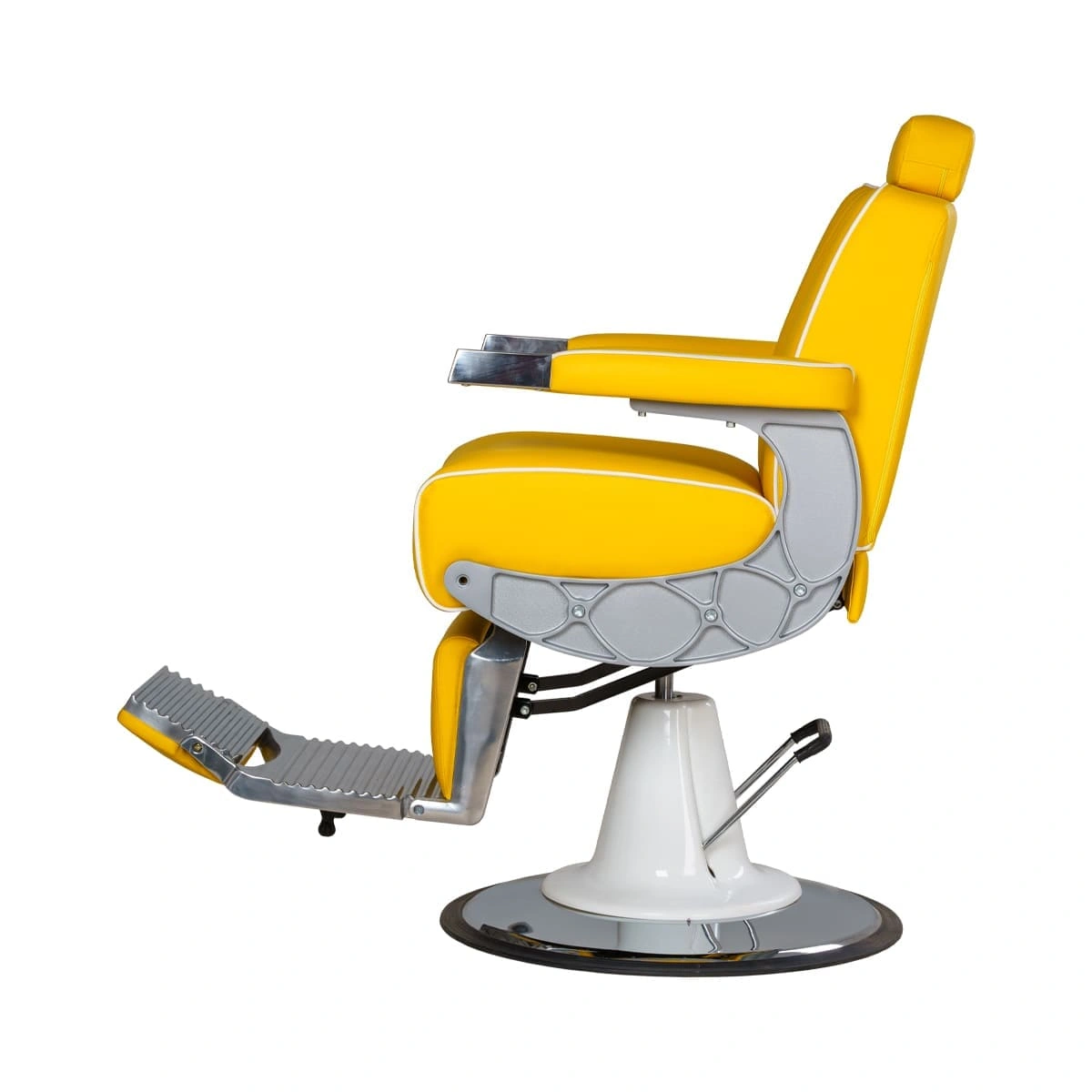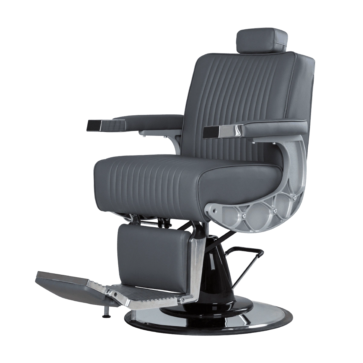 Подъем кресла осуществляется с помощью усиленной гидравлики, что позволяет выдерживать специфические нагрузки мужского салона. Регулировка угла наклона спинки и подножки происходит за счет внешнего рычага и пневматического механизма. Подголовник регулируется механически.