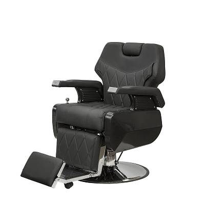 Широкое сидение с массивными подлокотниками позволит клиенту максимально расслабиться во время бритья и стрижки. Кресло дополнено большой подножкой с мягкой подушкой, что обеспечит комфорт ногам клиента.