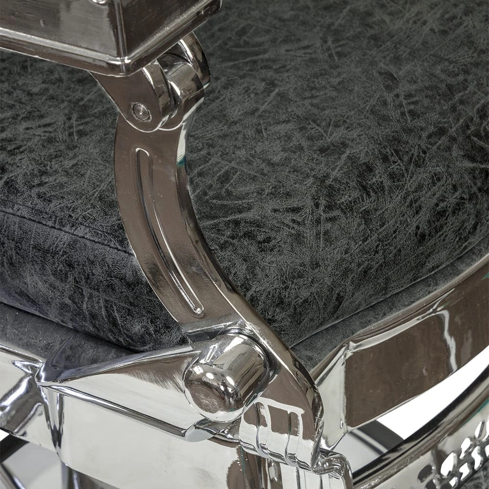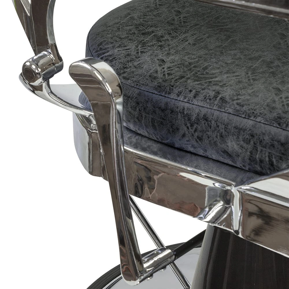 Мужской салон – место с повышенной нагрузкой, поэтому оборудование выполнено из надежных и прочных материалов. Каркас кресла в барбершоп изготовлен из прочной стали и установлен на круглое устойчивое основание. По краю основания есть резиновая накладка, предотвращающая скольжение мебели и царапины на полу. Наполнитель – эластичный поролон. В качестве обивки использована экокожа. Материал не впитывает влагу и загрязнения, не деформируется при использовании моющих и дезинфицирующих средств. Декоративные накладки на подлокотниках и подставке для ног из экокожи гармонично дополняют общий дизайн мебели в барбершоп.
