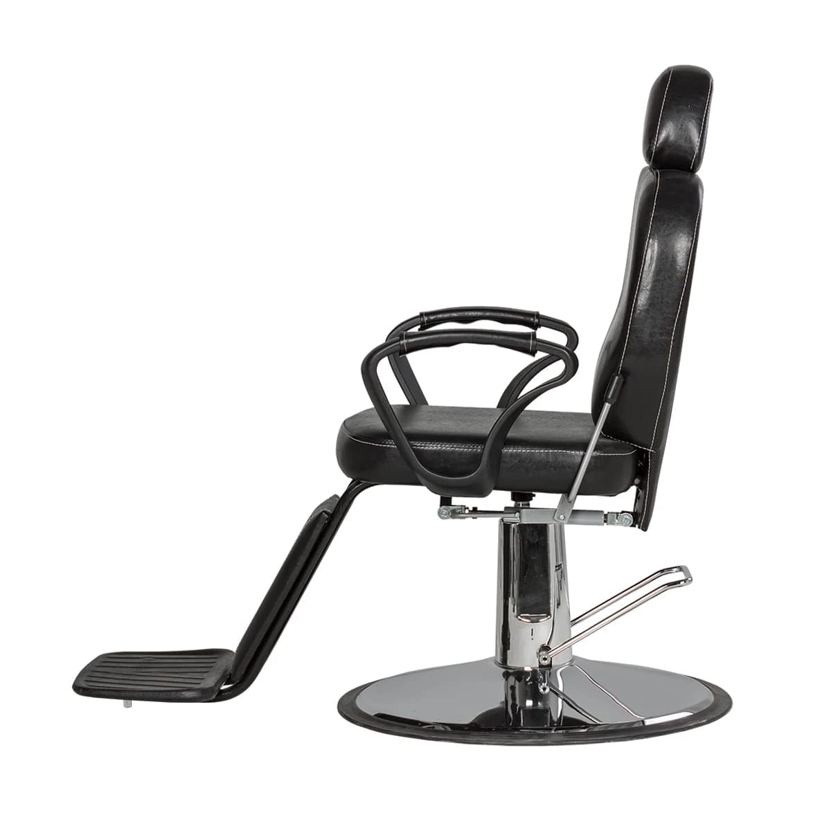 Продуманное дизайнерское решение позволяет оказывать услуги по уходу за волосами и бородой, а также делает кресло barber стильной составляющей интерьера. Для удобного расположения клиента любого роста предусмотрена подножка и выдвижной подголовник. По бокам сиденья установлены эргономичные подлокотники из прочного черного пластика. Подъем кресла осуществляется при помощи надежного гидравлического механизма, а для наклона спинки установлен газ-патрон.