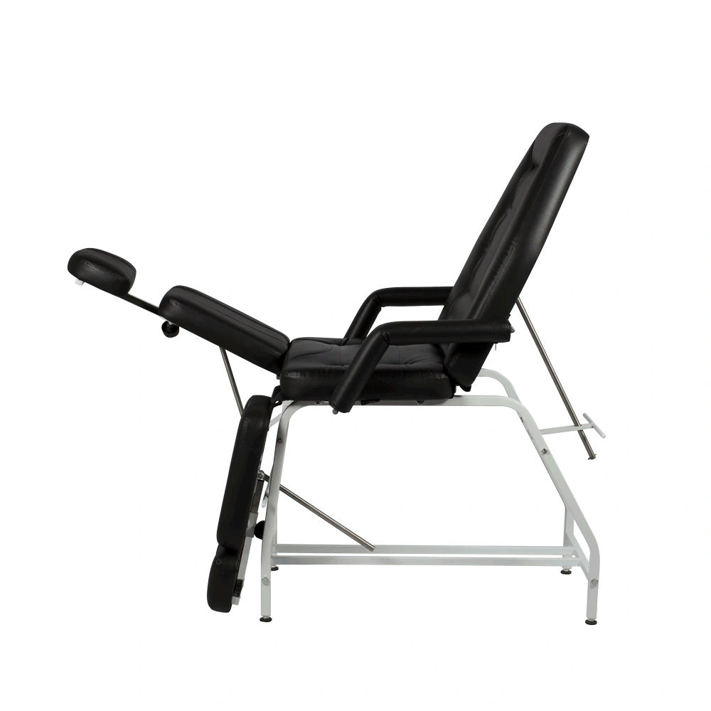 Кресло при необходимости можно разложить до горизонтального положения. Дополнительные подушки для стоп могут выдвигаться, удлиняя размер подножек. Это особенно удобна для посетителей высокого роста. Ножная часть раздельная. Каждая подножка может опускаться до 90 градусов, а подниматься на высоту до 1 метра. Регулировка высоты позволит мастеру подобрать оптимальное положение для каждого клиента.