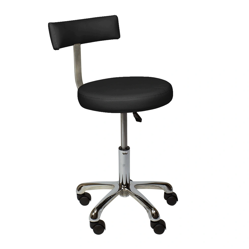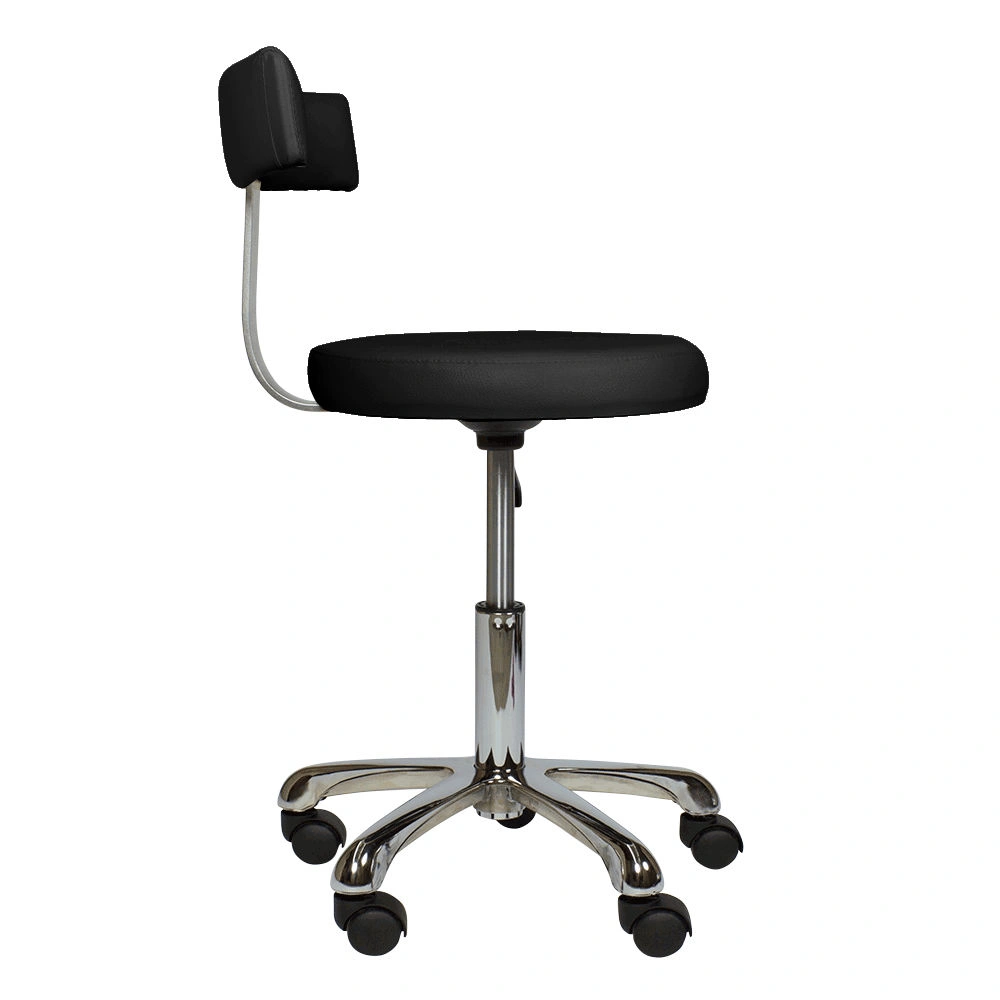 Стул мастера выполнен в классическом дизайне с применением качественных материалов. Удобное сидение и мягкая спинка созданы из самовосстанавливающегося поролона, обшиты первоклассной экокожей. На таком материале не возникнут вмятины, он хорошо моется и сохранит красивые внешние данные на протяжении длительного срока эксплуатации. Конструкция установлена на крепкое хромированное основание – пятилучье, обеспечивая устойчивость. Комплектация вращающимися колёсами из прочного пластика делает оснащение мобильным, что позволит татуировщику просто и быстро перемещаться по рабочему пространству.