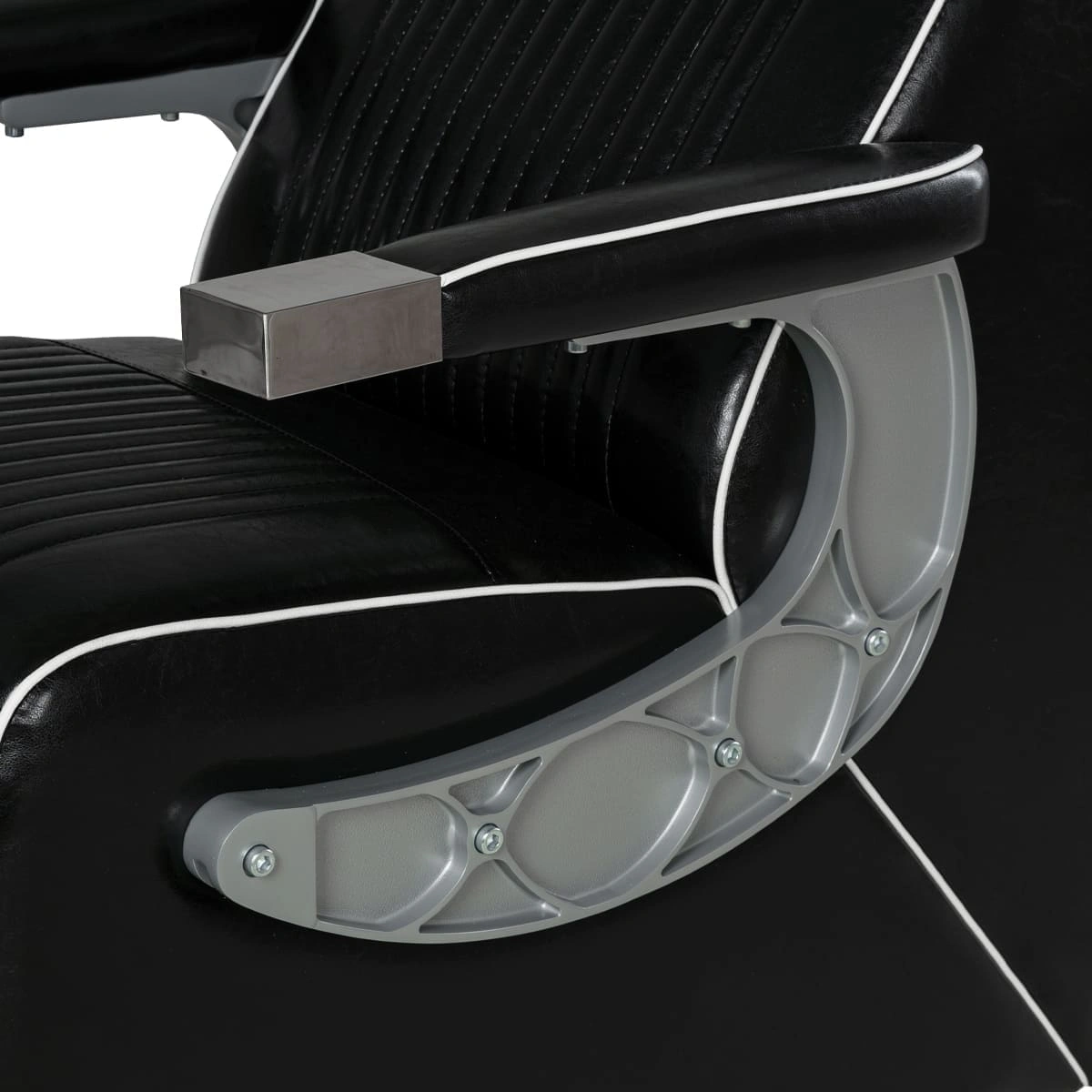 Подъем кресла осуществляется с помощью усиленной гидравлики, что позволяет выдерживать специфические нагрузки мужского салона. Регулировка угла наклона спинки и подножки происходит за счет внешнего рычага и пневматического механизма. Подголовник регулируется механически.