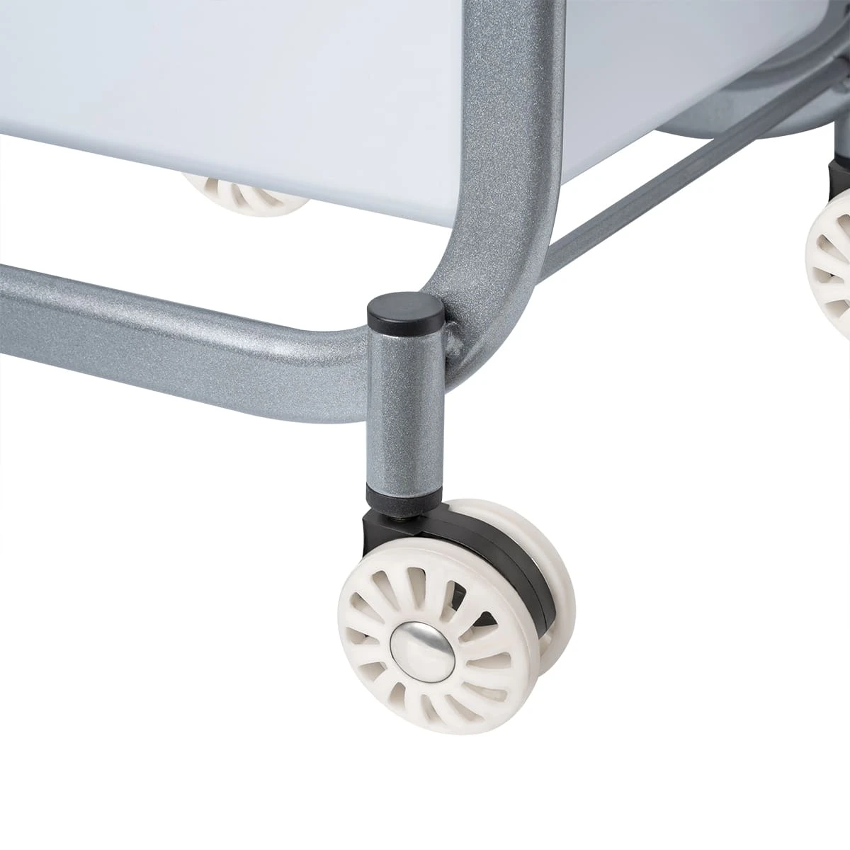 Профессиональная тележка парикмахерская Арт имеет новый стильный каркас. Она установлена на дизайнерские мобильные колеса, благодаря чему мастер сможет легко перемещать ее в рабочей зоне, не прерывая рабочий процесс.