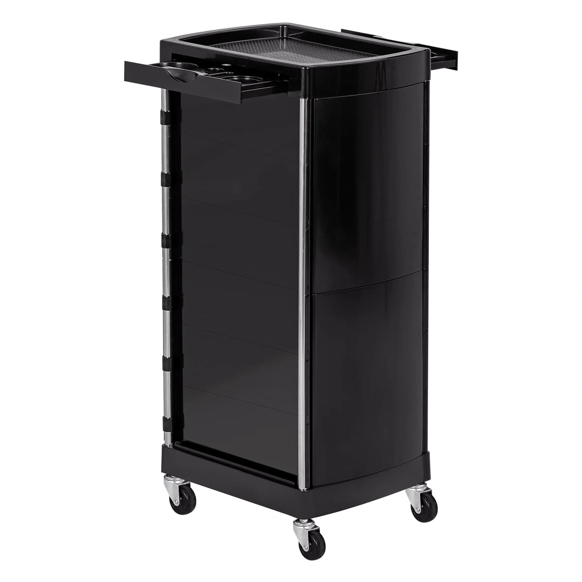 Основание парикмахерской тележки на 4 манёвренных прорезиненных колёсах, благодаря чему мастер сможет легко перемещать ее в рабочей зоне, не прерывая рабочий процесс.