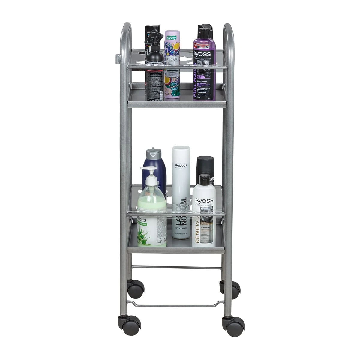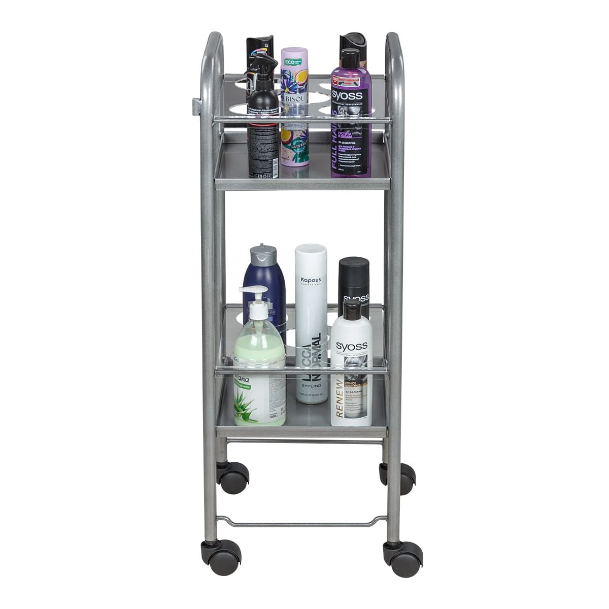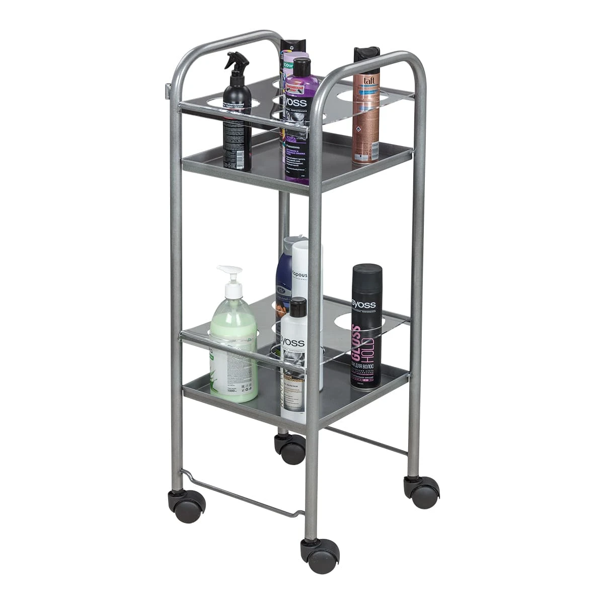 Стильная и легкая тележка для шампуней Синди-01 станет незаменимым помощником парикмахера. С таким оборудованием шампуни, бальзамы и лаки для волос будут всегда под рукой мастера.