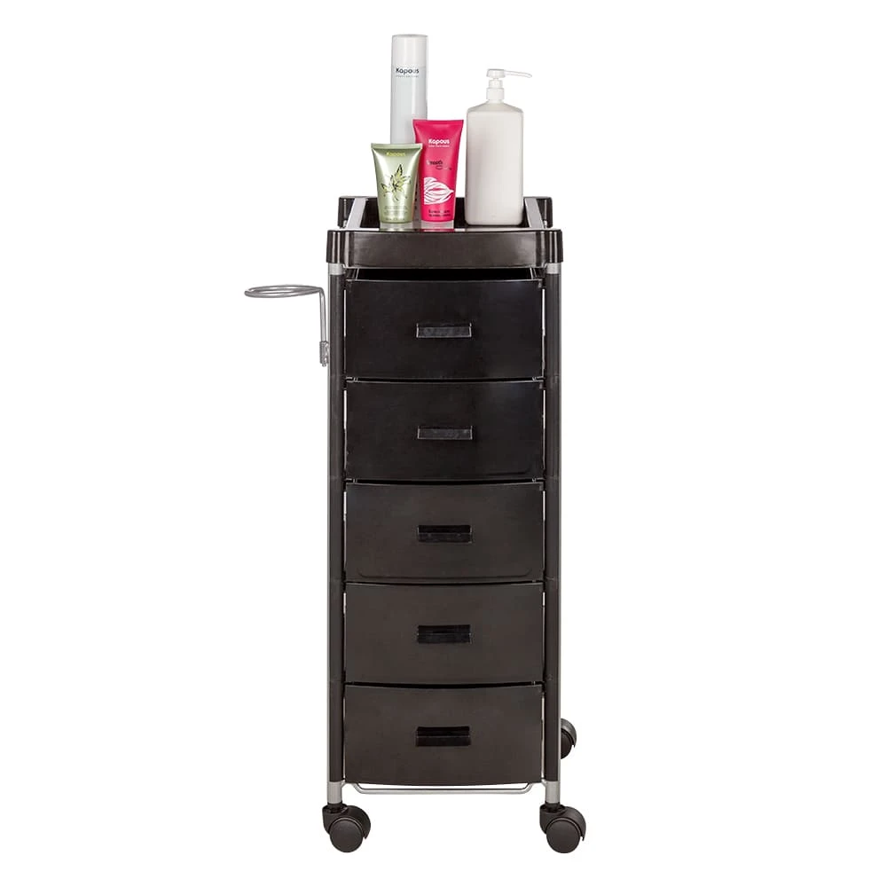 На верхней полке можно разложить инструмент первой необходимости. Остальные приспособления и косметологические средства можно компактно разместить в ящиках. С маневренными колесами мастер может перемещать парикмахерское оборудование по рабочей зоне. Благодаря компактным размерам тележка подойдет даже для помещений с малой площадью.