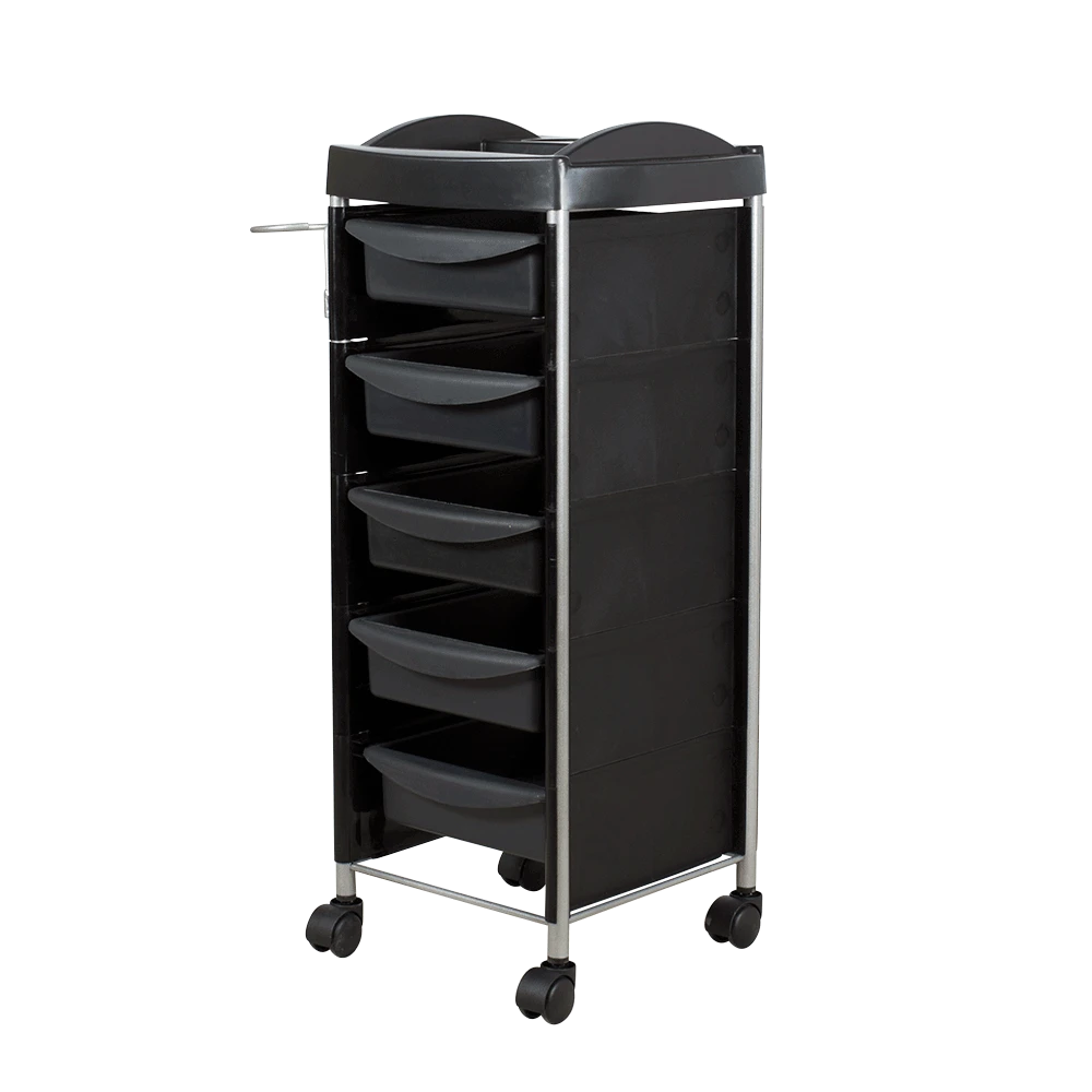Удобная и вместительная тележка парикмахерская М-03 Next черная позволит мастеру организовать рабочее пространство и повысить эффективность работы. Каркас металлический, со специальным влагозащитным покрытием. Боковины состоят из отдельных пластиковых панелей, которые предотвращают выпадение содержимого из ящичков и обеспечивают эргономичность тележки. Верхняя крышка в виде функциональной полочки с отделениями и выдвижные ящики так же изготовлены из ударопрочного пластика в черном цвете. В ящичках специалист сможет разместить всё необходимое для работы: инструменты, оборудование, косметические средства, приспособления и прочее.