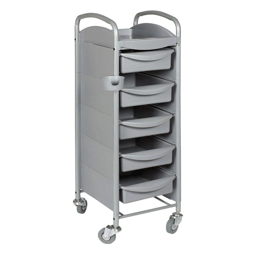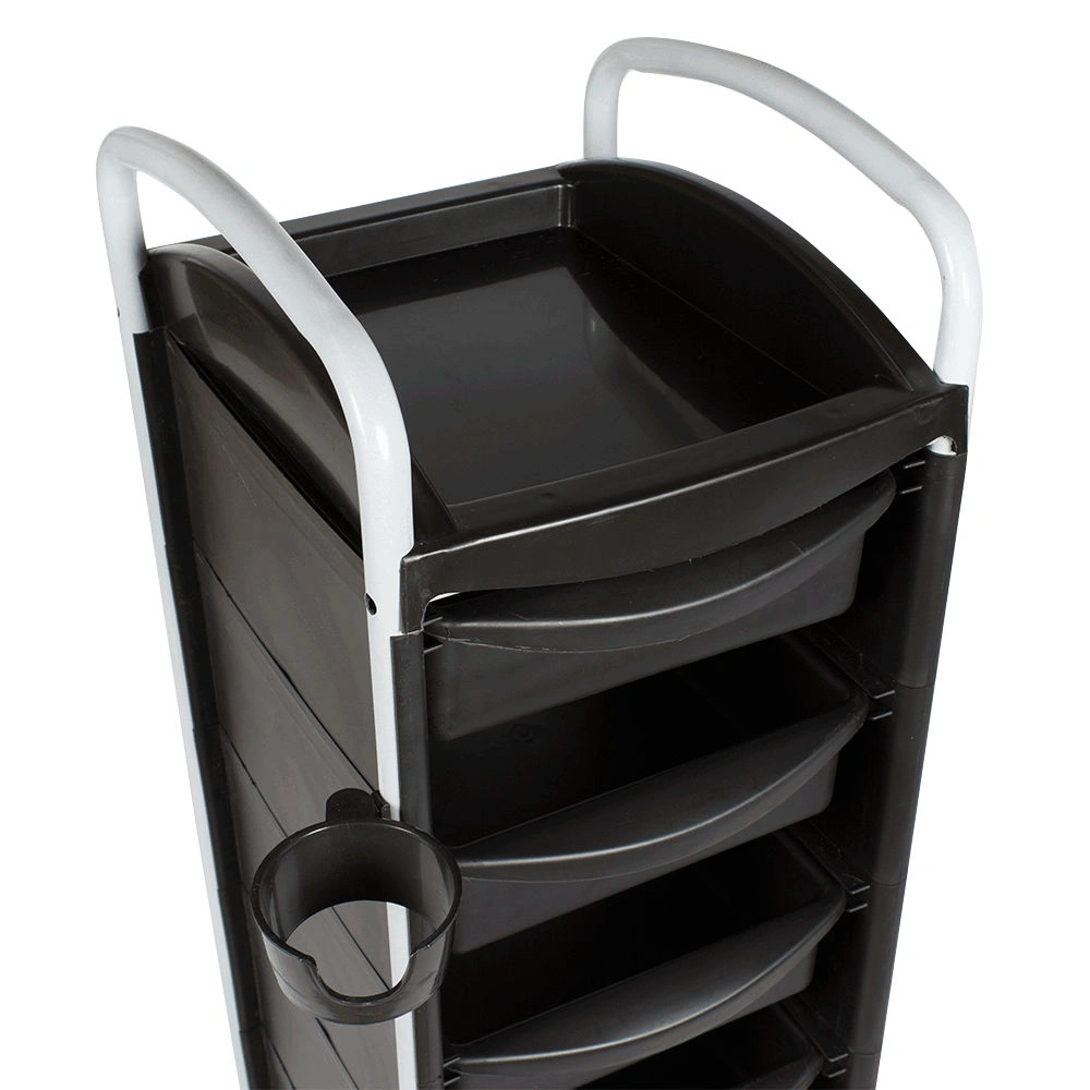 Передвижная тележка парикмахерская Т-20 черного цвета производится из качественного пластика, который устойчив к дезинфекциям и воздействию косметических препаратов. Надежность и устойчивость данного оборудования обеспечивает прочный каркас из металла с влагозащитным покрытием. В комплектацию тележки входит пять удобных ящиков. Они выдвижные и рассчитаны на размещение всех необходимых в работе материалов, приборов, инструментов и аксессуаров.