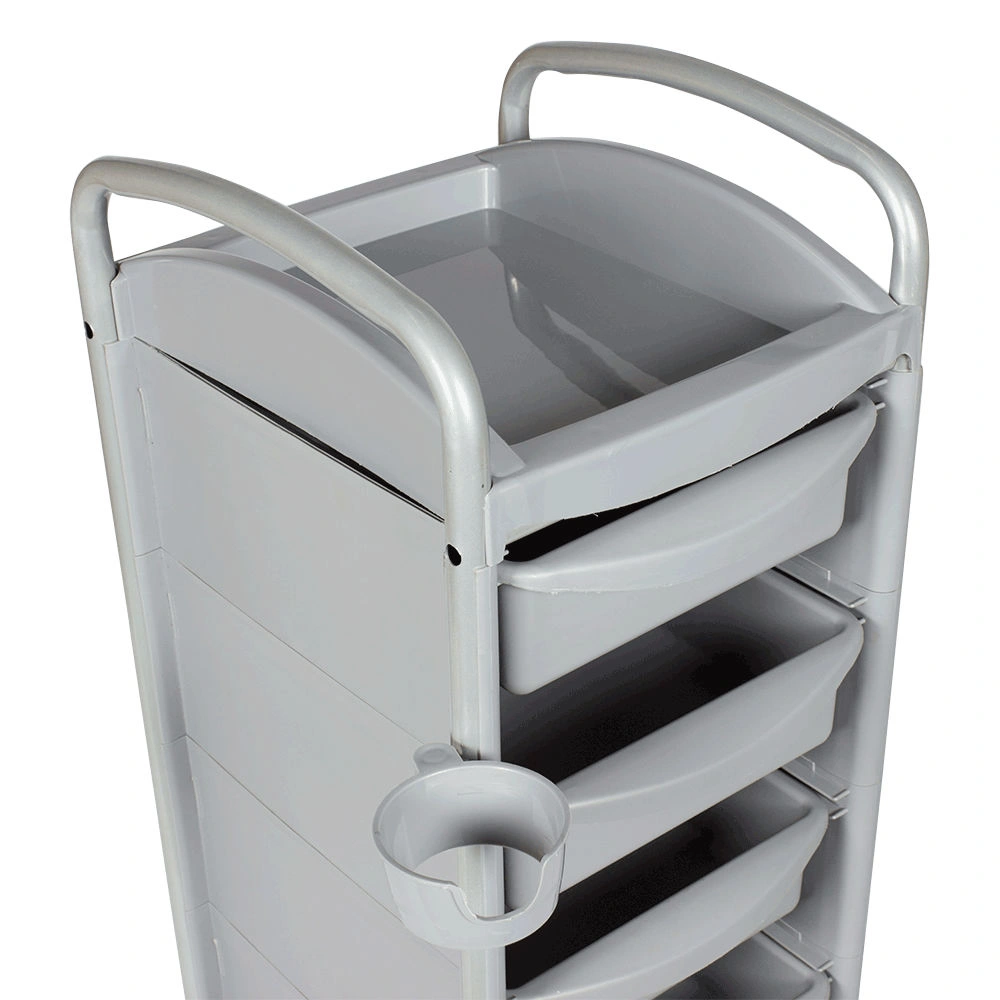 Передвижная тележка парикмахерская Т-20 серого цвета производится из качественного пластика, который устойчив к дезинфекциям и воздействию косметических препаратов. Надежность и устойчивость данного оборудования обеспечивает прочный каркас из металла с влагозащитным покрытием. В комплектацию тележки входит пять удобных ящиков. Они выдвижные и рассчитаны на размещение всех необходимых в работе материалов, приборов, инструментов и аксессуаров.