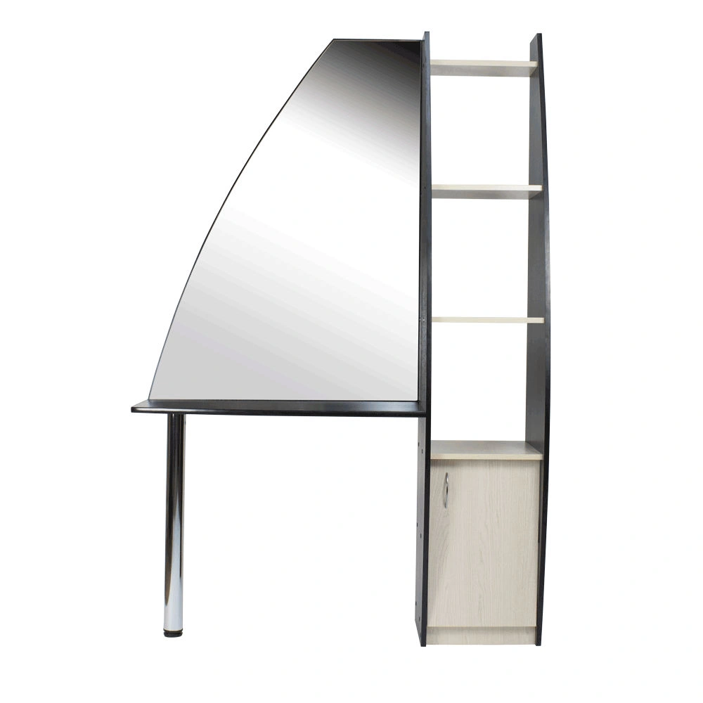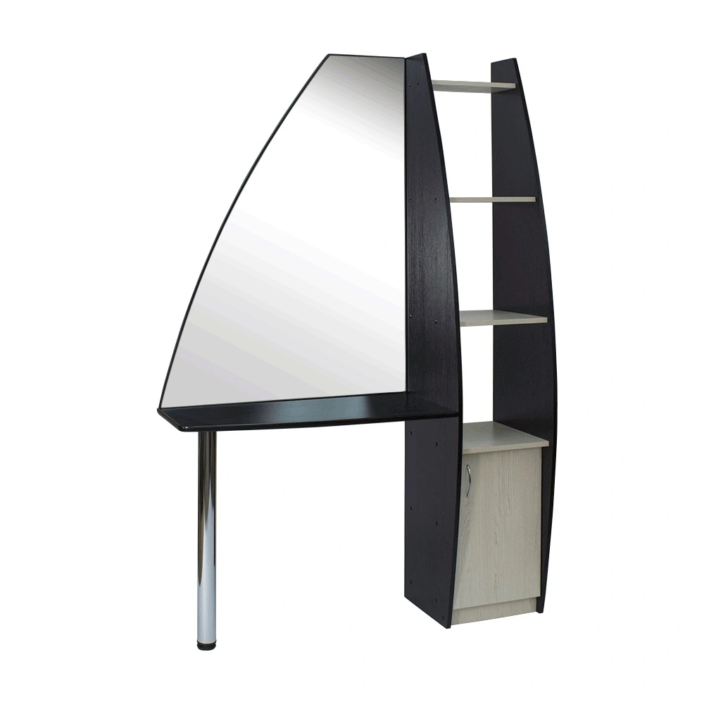 Стильное парикмахерское зеркало Сапфир поможет организовать рабочее место парикмахера для удобной и эффективной работы. Оно имеет современный дизайн и отличный функционал. Основанием для зеркала выступает широкая столешница, а для дополнительной устойчивости оно также крепится к каркасу. На полочках и в тумбе легко поместятся необходимые в работе инструменты, косметика, расходные материалы, аксессуары и приборы.