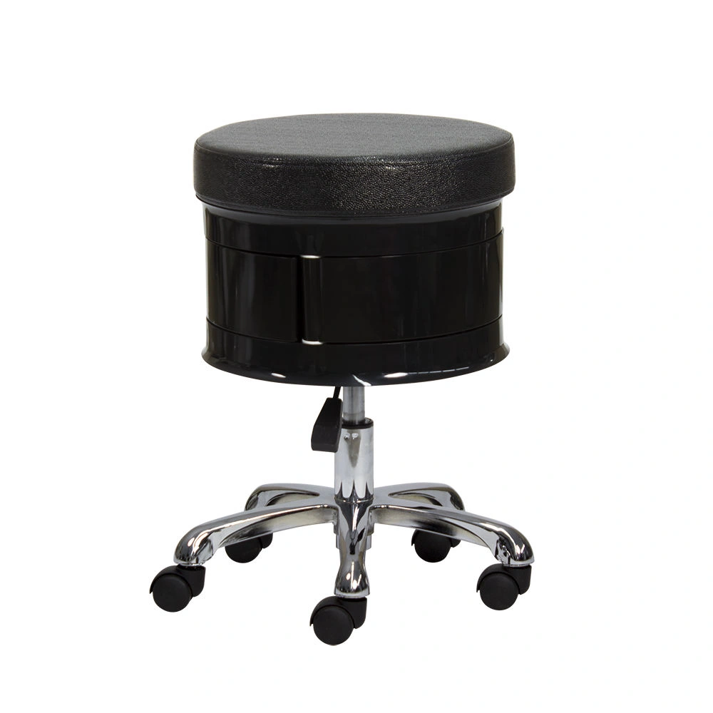 Для комфортной посадки предусмотрено мягкое сидение. В нижней части есть практичные ящики, чтобы держать необходимый инструмент во время проведения процедур. Для удобного перемещения стул укомплектован поворотными колесиками. Теперь не придется лишний раз вставать и передвигать мебель вручную. С помощью пневматического механизма регулируется высота стула, что позволит подобрать удобное положение.