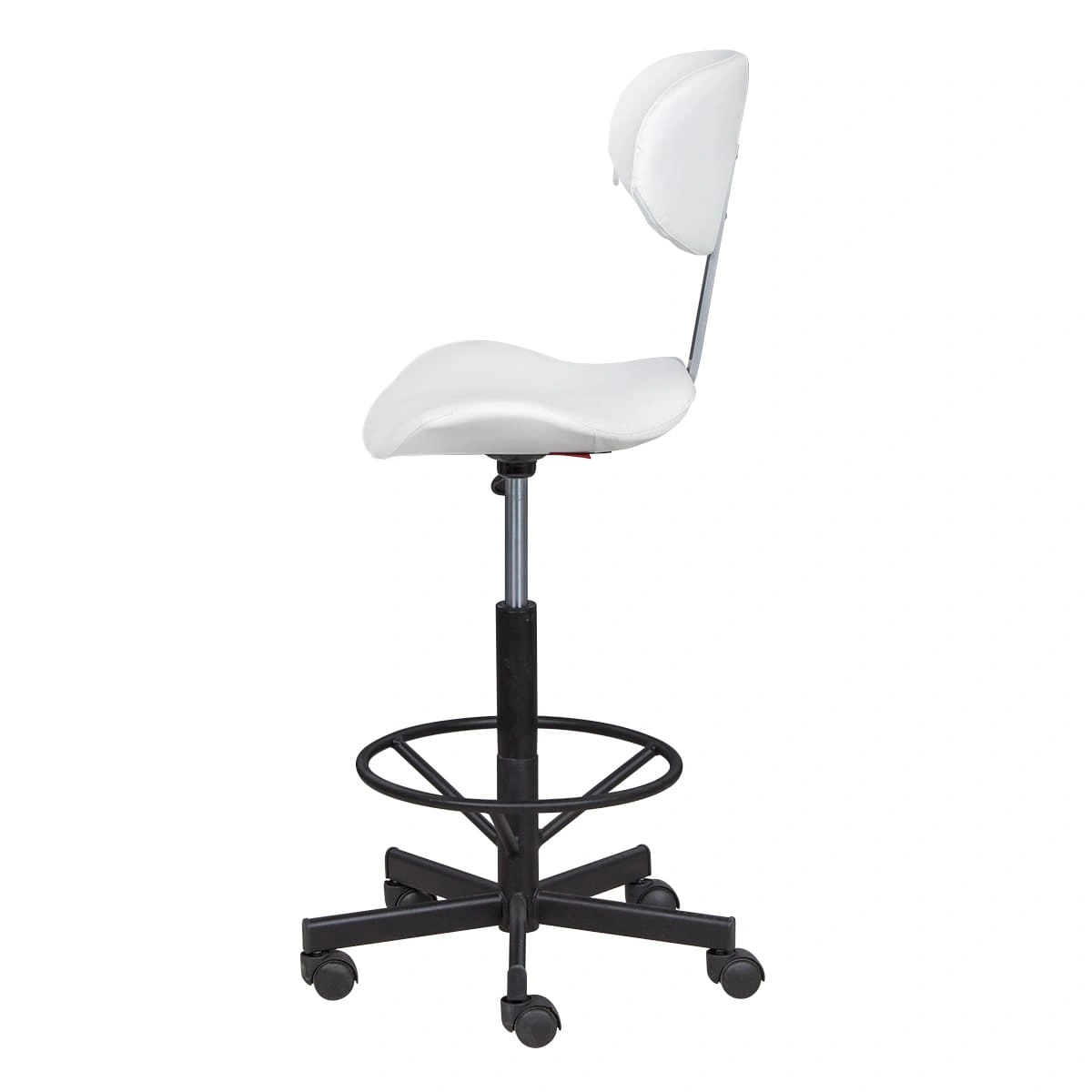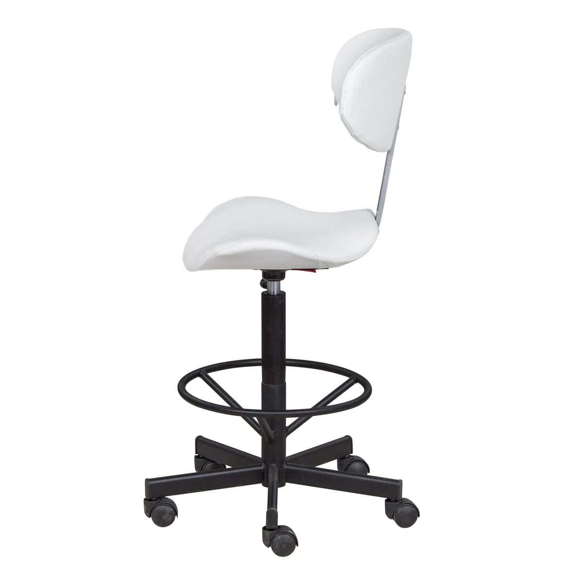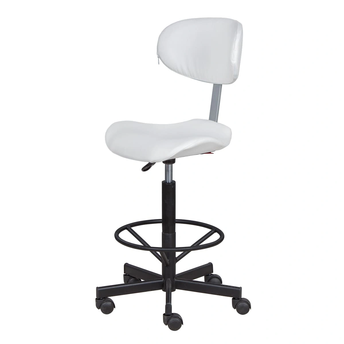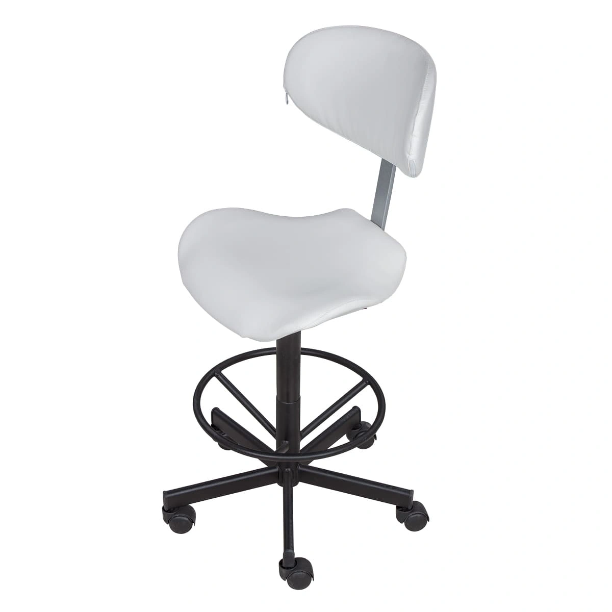 Высокий стул мастера Кейси с опорой для ног создан, чтобы предотвратить усталость во время длительных процедур.