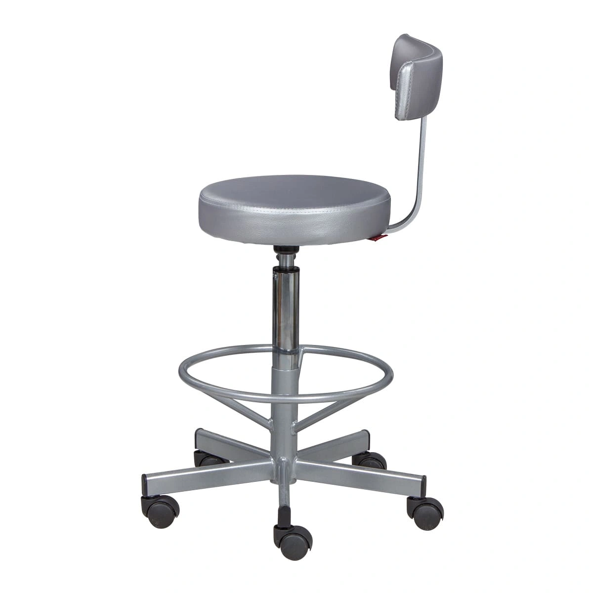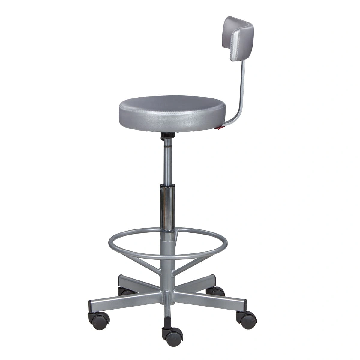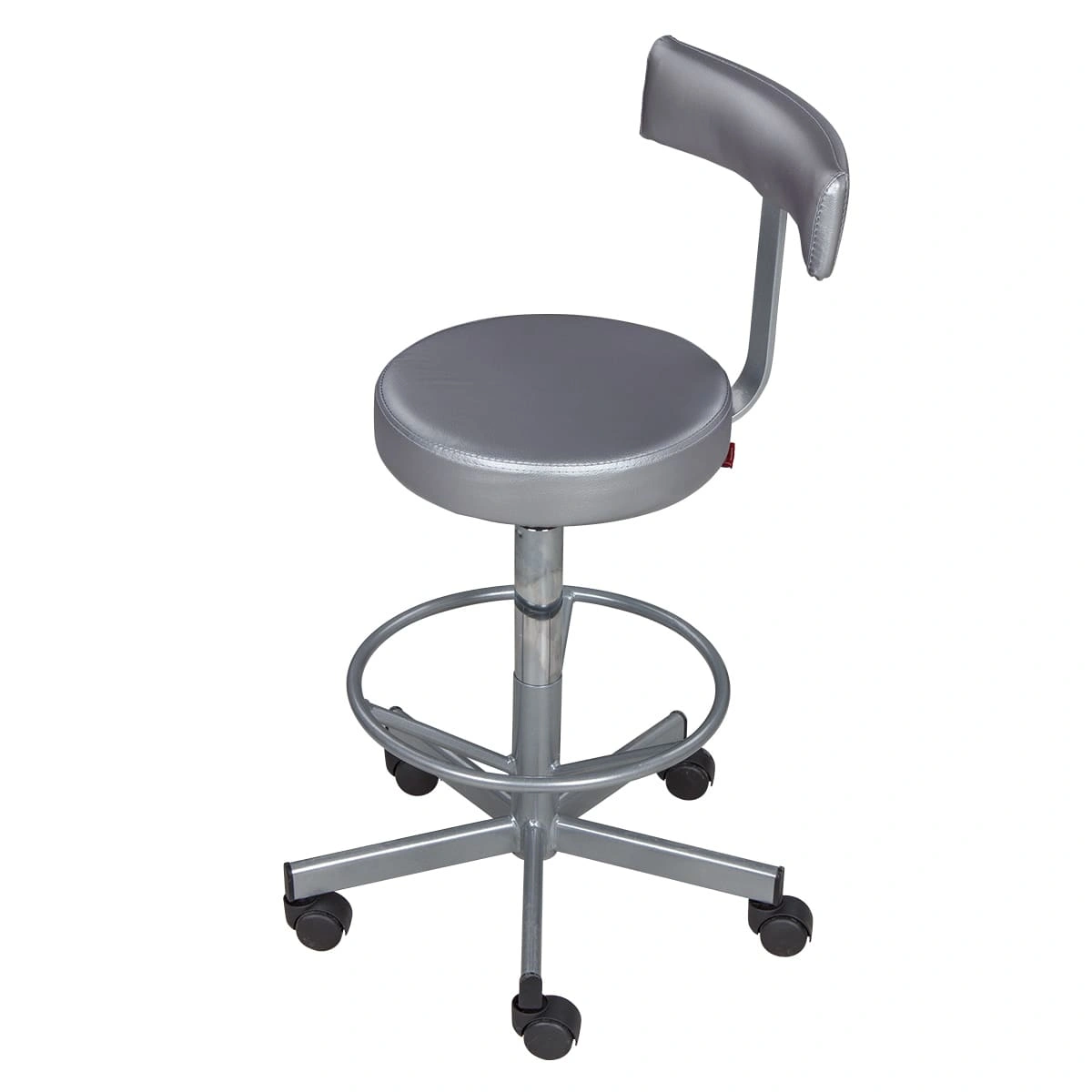 Сиденье со спинкой обеспечит мастеру удобства, необходимые для комфортной работы. Удобная опора предназначена для комфорта ног специалиста. Надежный пневматический механизм позволяет подобрать желаемую высоту сиденья для разных процедур. Маневренные колесики отвечают за легкое и бесшумное перемещение парикмахерского оборудования.