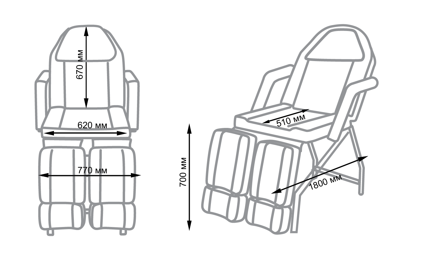 В магазине МЭДИСОН купить педикюрное кресло МД-3562 можно с такими размерами: