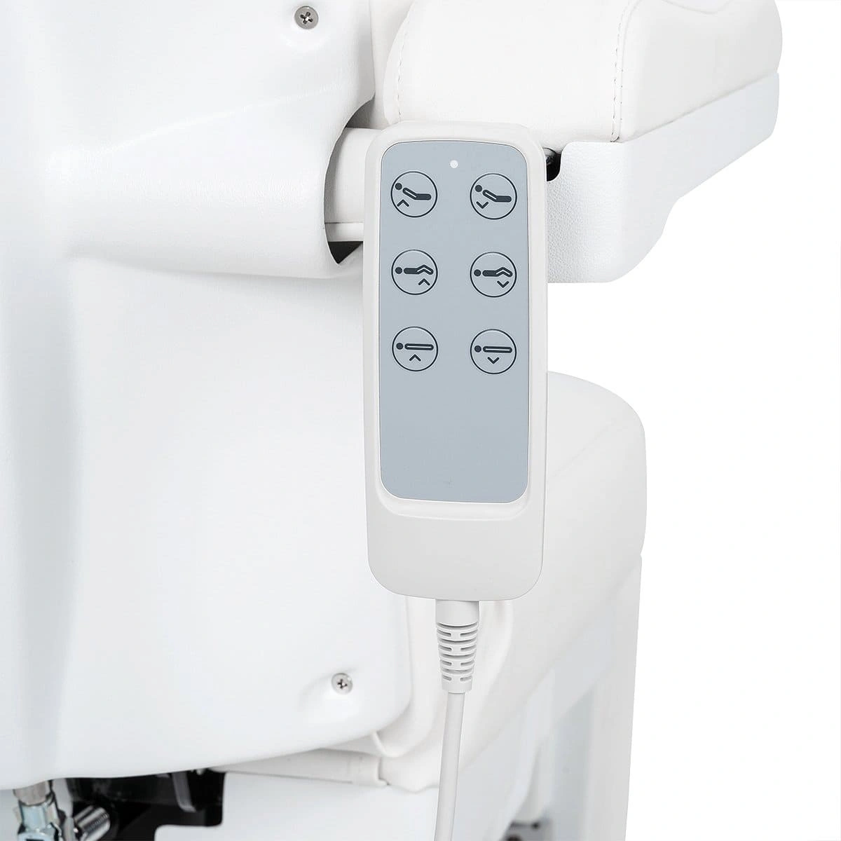 Комплектация: каркас, основание на подпятниках, сиденье, спинка, подголовник с вырезом для лица и съемной подушкой, мягкие элементы под ноги с выдвижными подпятниками, съемные подлокотники, электропривод (3 мотора) с пультом управления.