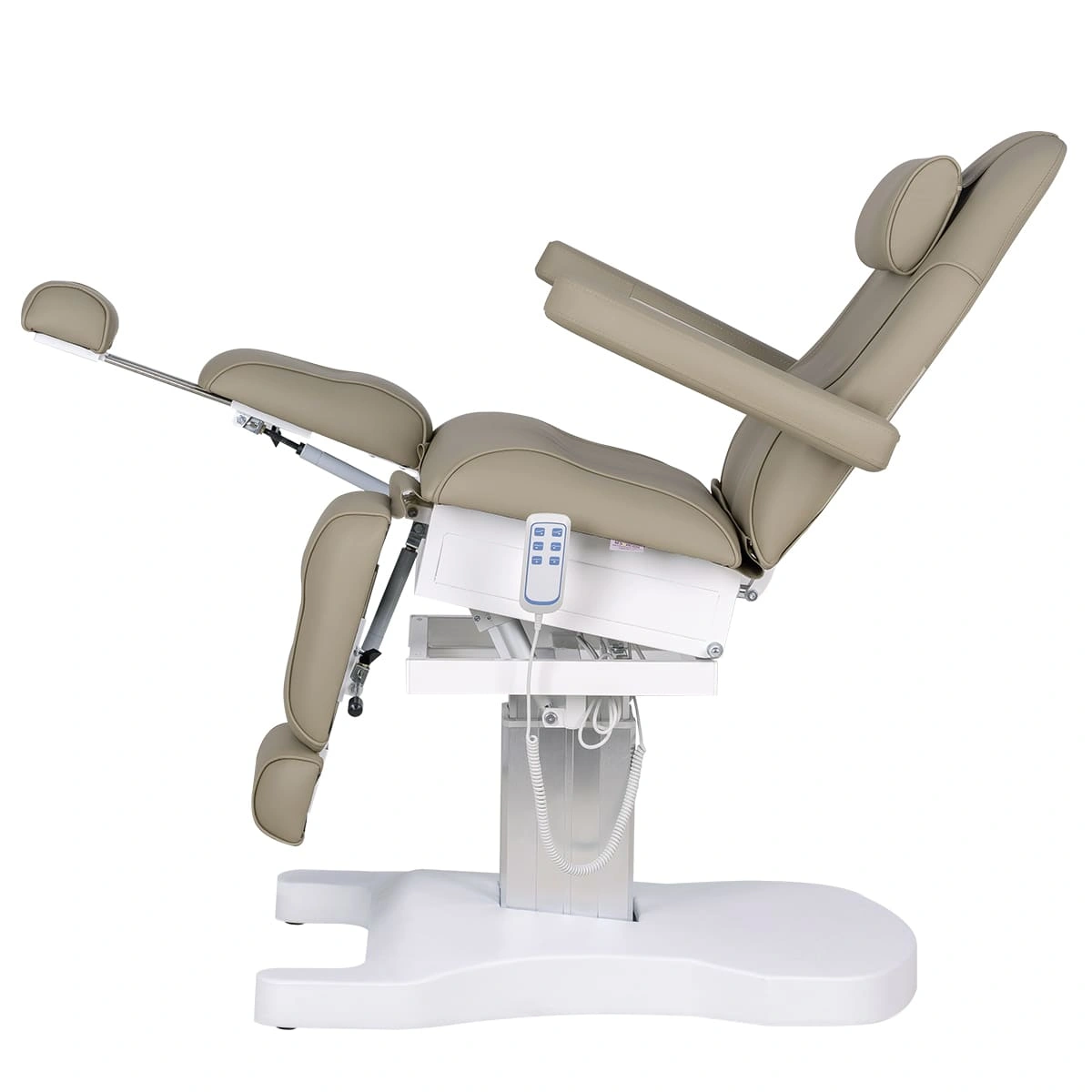 Педикюрное кресло Шарм-04 на колонне, 3 мотора гармонично сочетает в себе инновационные технологии, современный дизайн и хороший функционал. В его комплектацию входит три мотора электрического привода, управление которыми осуществляется при помощи удобного, компактного пульта. Все механические детали аккуратно спрятаны в стильной серебристой колонне. Благодаря продуманной конструкции металлического каркаса и широкому основанию на подпятниках кресло сохраняет свою устойчивость под воздействием рабочих нагрузок в любом положении, предусмотренном регулировками. Пластиковая накладка на основании интересной формы подчеркивает дизайнерское решение. Купить педикюрное кресло Шарм-04 на колонне, 3 мотора можно для установки в любом подходящем помещении.