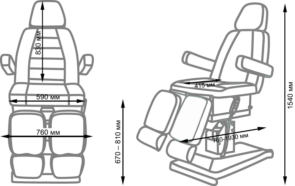 Характеристики педикюрного кресла Сириус-08 (Элегия-1В), 1 мотор: