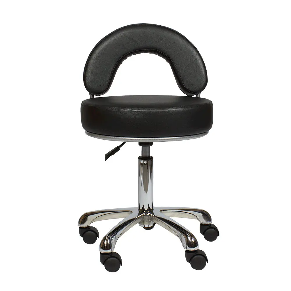 В комплектацию стула входит хромированное пятилучье на колесах из ударопрочного черного пластика. Наличие легко вращающихся колес позволяет мастеру быстро и без усилий перемещаться по помещению, не прерывая рабочий процесс. Основание является очень устойчивым и выдерживает большие нагрузки. Данный стул отлично подойдет мастеру по педикюру и маникюру, визажисту, косметологу, администратору на ресепшене и другим специалистам. Профессиональный стул мастера МД-2118 магазин МЭДИСОН предлагает в цветах складской программы – белом, черном, слоновая кость и серебро.