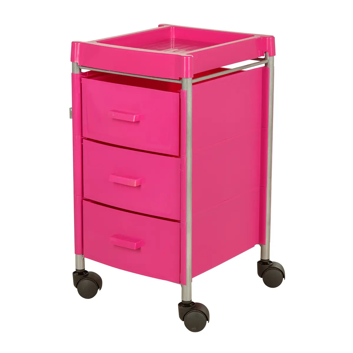 Качественные материалы и фурнитура обеспечат долгий эксплуатационный срок. Для изготовления каркаса использована прочная сталь. Крышка, стены и ящики выполнены из качественного пластика. Материал легко моется, не деформируется при дезинфекции и случайном попадании косметических препаратов. Пластиковые колеса не способны навредить напольному покрытию.